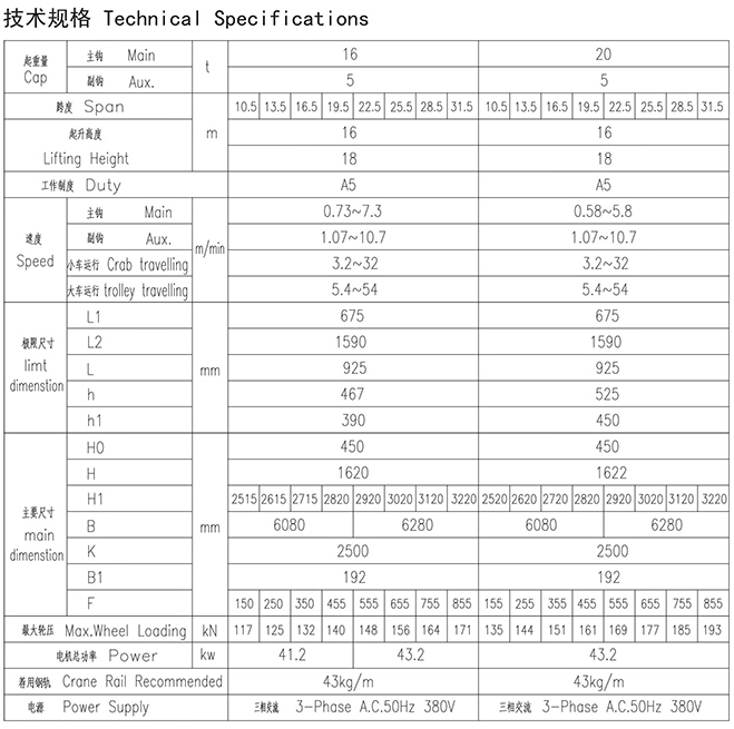 16~20t欧式吊钩桥式起重机